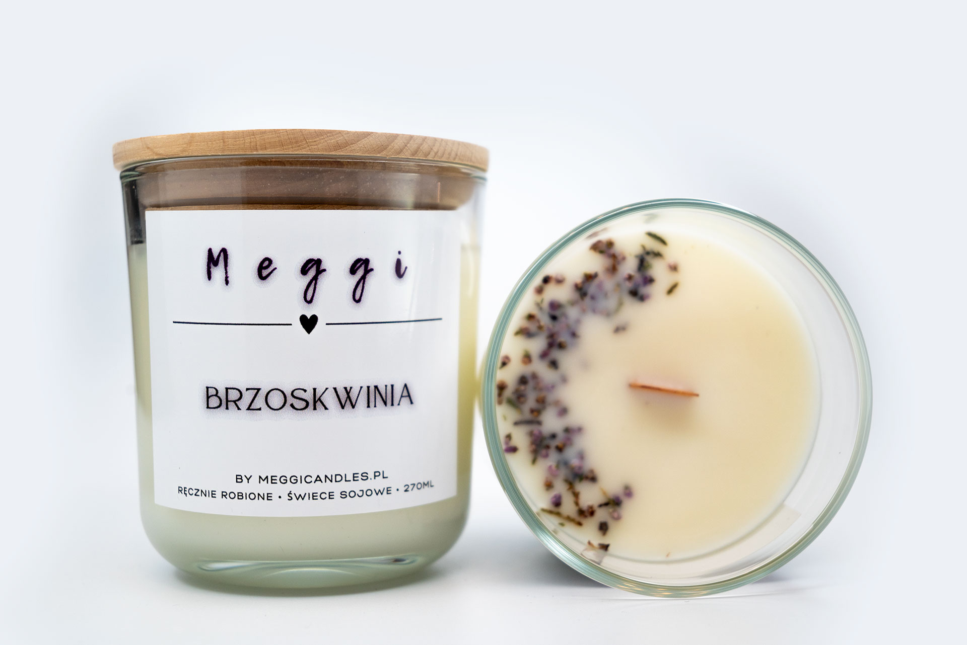 Rozkoszuj się słodkim urokiem lata z naszą świecą o zapachu Brzoskwinii od MeggiCandles. Ta starannie wykonana świeca z naturalnego wosku sojowego uwalnia delikatny zapach dojrzałych brzoskwiń, przynosząc do Twojego domu atmosferę beztroskich, słonecznych dni. Idealna do stworzenia relaksującej przestrzeni pełnej ciepła i radości, czy jako upominek, który rozjaśni każdą chwilę.